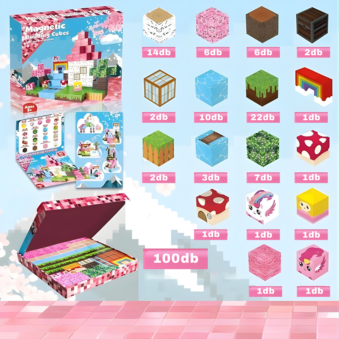 Fedezd fel a kreativitás új dimenzióját a 100 darabos mágneses játékkocka készlettel! A színes és erős mágnesekkel ellátott kockák segítségével a gyerekek könnyedén építhetnek várakat, hidakat, barlangokat vagy bármilyen más fantáziavilágot, amit csak elképzelnek.